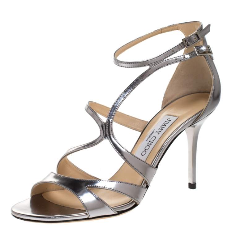 Jimmy Choo Silver Sandals / Jimmy choo tarnfarbe metallisch schwarz lottie knöchelriemen sandalen sz 38 neu.